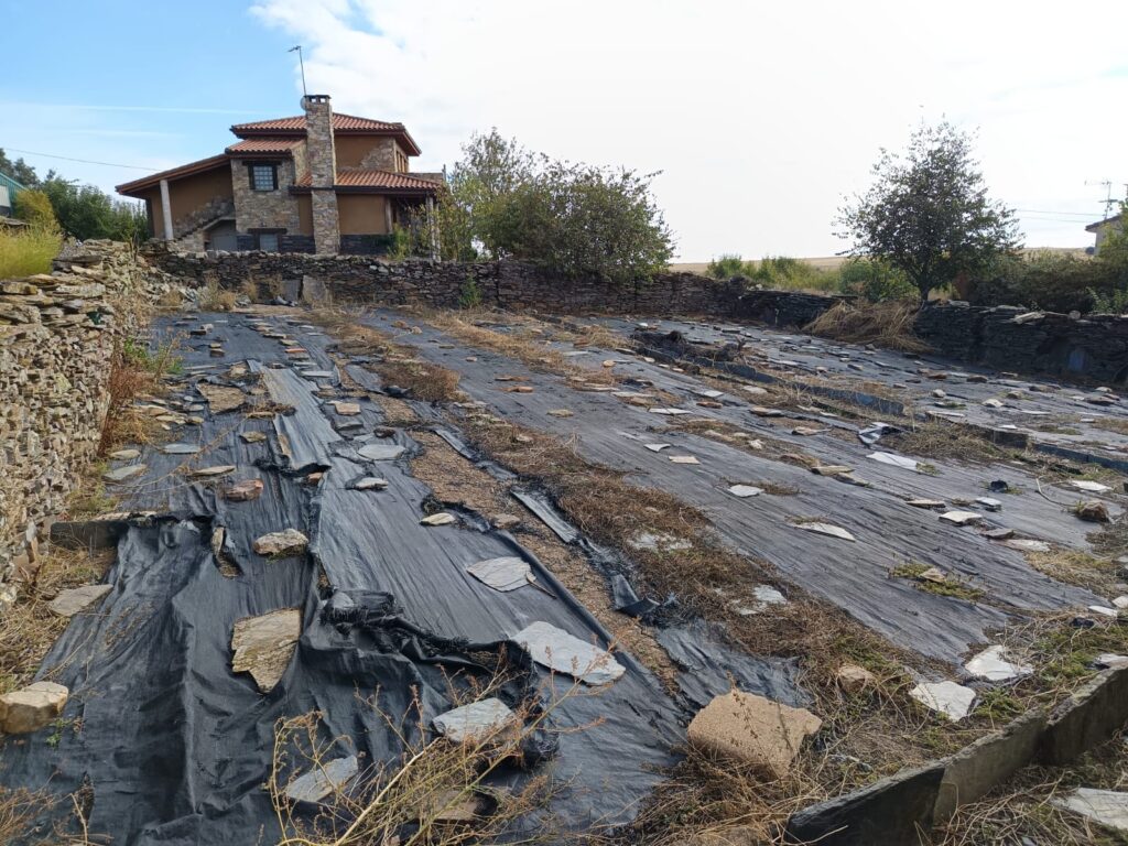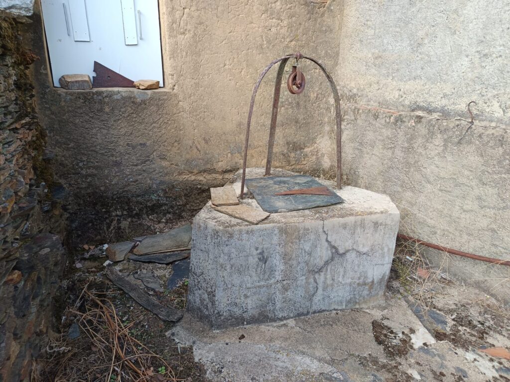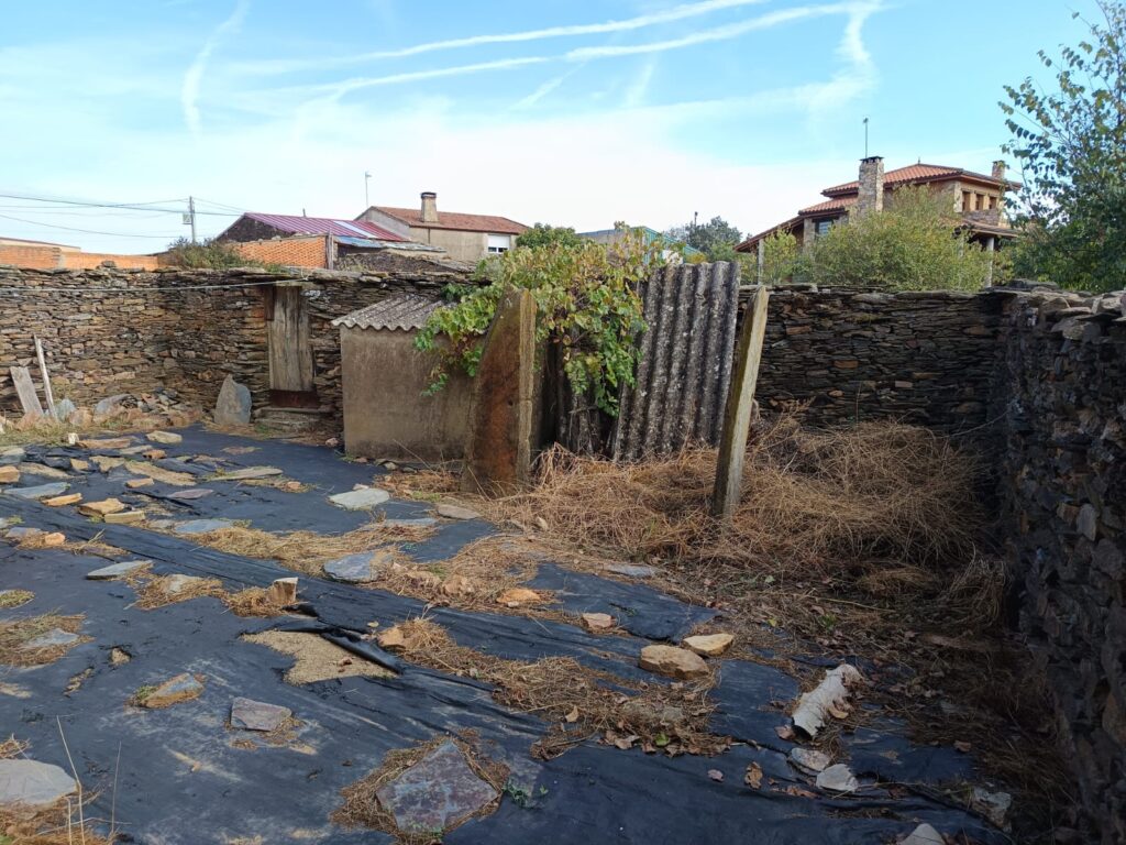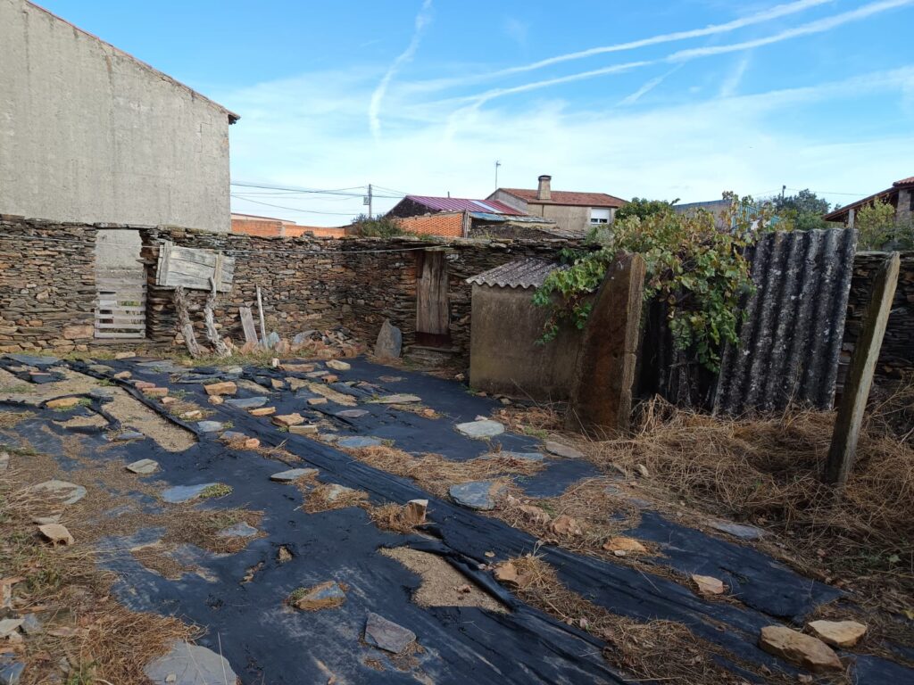 En la parte posterior cuenta con un patio amplio y soleado y un huerto con pozo, con una superficie total de 350m2.