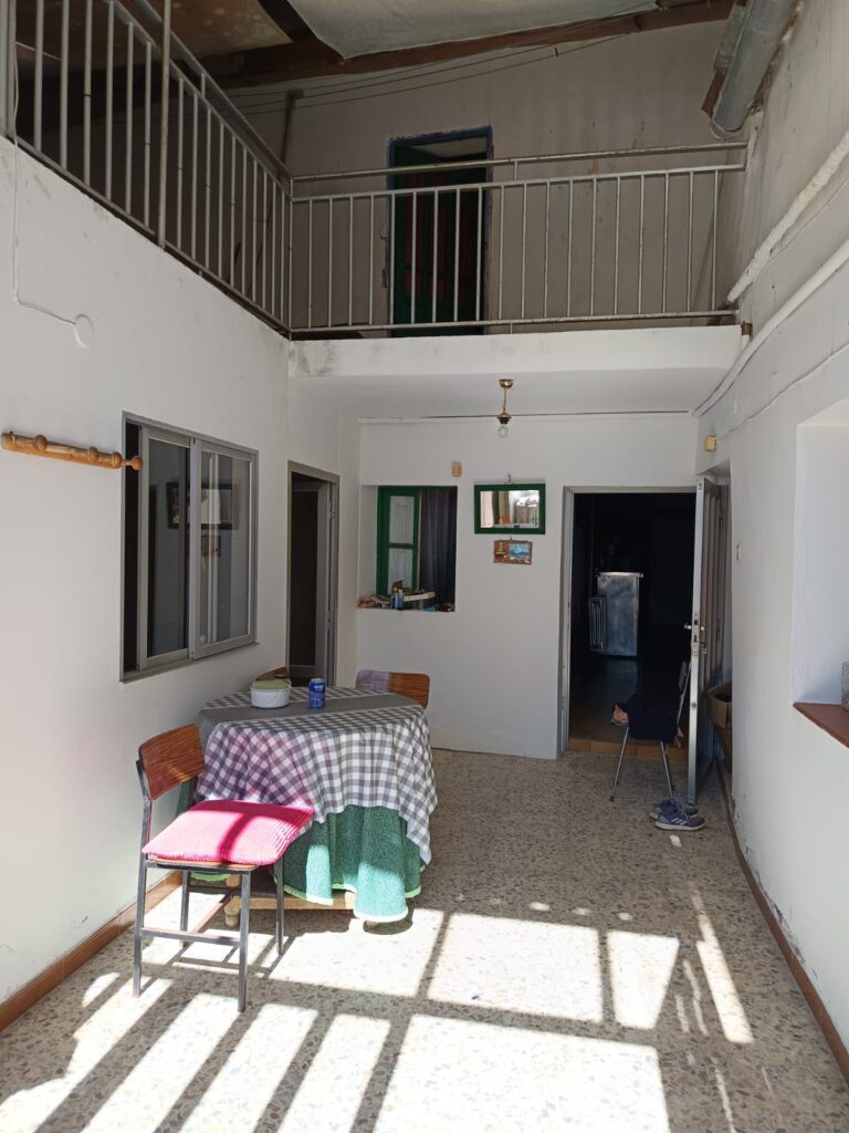 En la parte delantera cuenta con un patio amplio y soleado y en la parte trasera con un huerto con pozo.